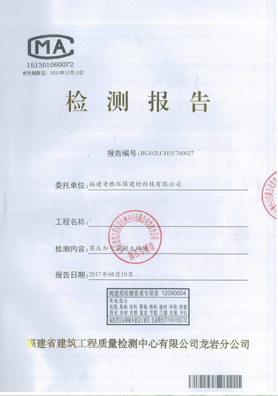 New high-precision aerated block (concave-convex type) test report